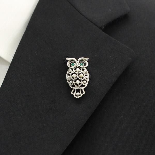 ラペルピン・上品な淡水パールが印象的なふくろうのシルバーブローチ(タイタック)