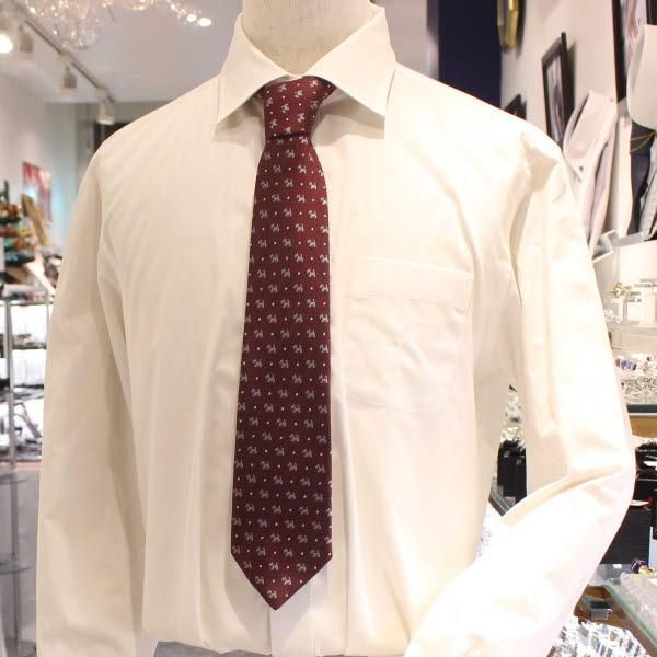 全3色・ミニチュアシュナウザー・テリア・犬×ドット・小紋柄・ワインの西陣織ネクタイ