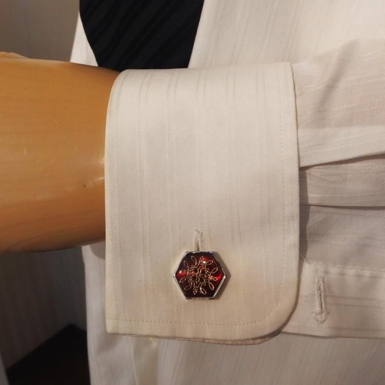 深みのある赤とゴールドのラインがエキゾチックなムードのカフス