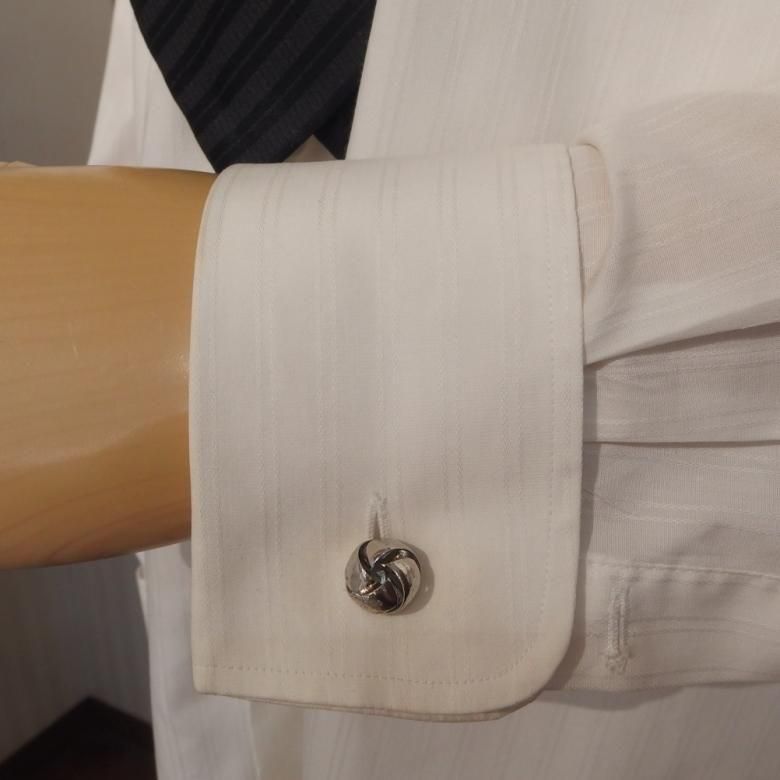 シンプルでエレガントなデザインが魅力の結び目カフス。シルバー製のカフスボタンはビジネスシーンにぴったり。特徴的な結び目が太く、存在感のあるアクセサリーです。