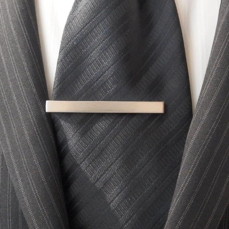 4色展開。マット仕上げのスムースなネクタイピン。装いを格上げるアクセント。