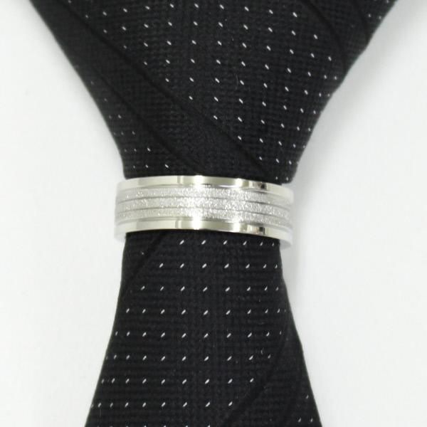 ネクタイリング・シルバーエッジ×シルバー・ラメラインのタイリング(スカーフ留)