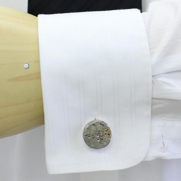シルバー・時計ウォッチ・ムーブメント・ラウンドのカフス(カフリンクス/カフスボタン)