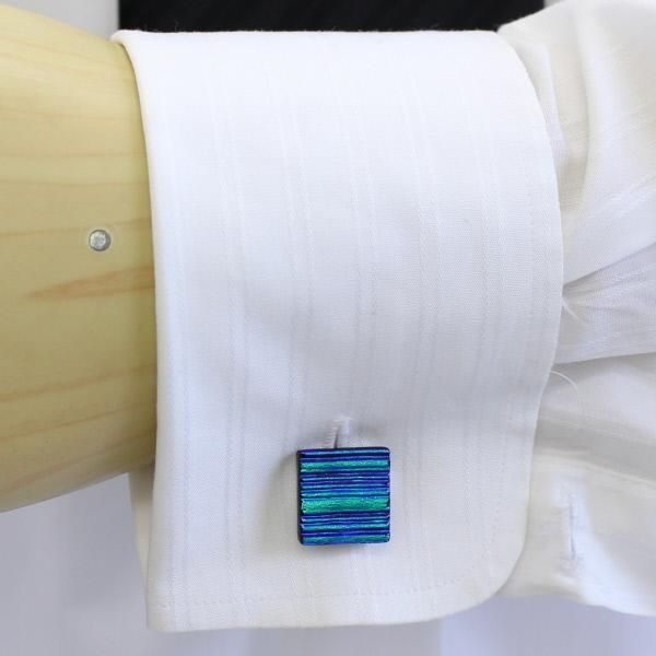 ムラーノ・ベネチアンガラス・偏光ブルー横線ストライプのカフス(カフスボタン/カフリンクス)